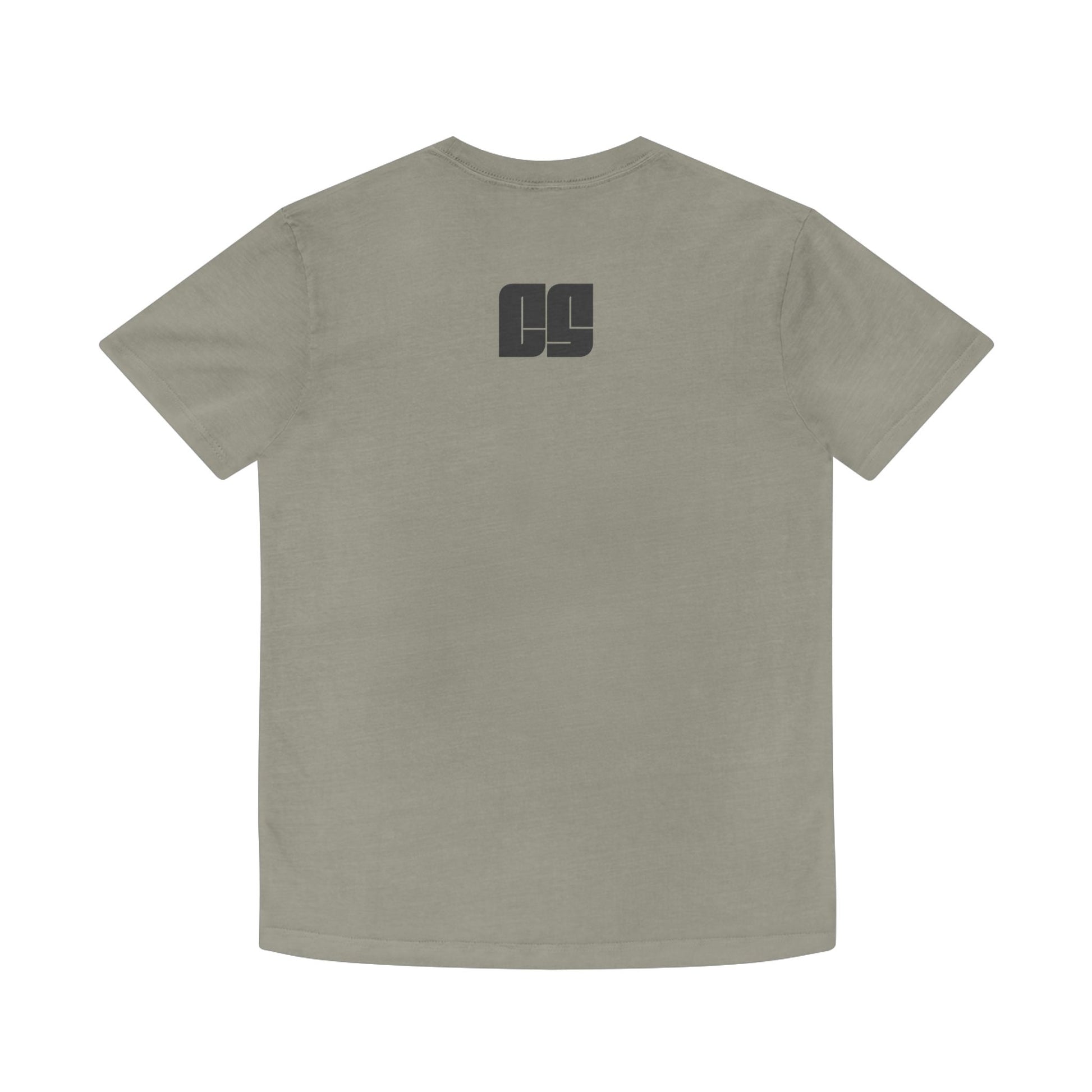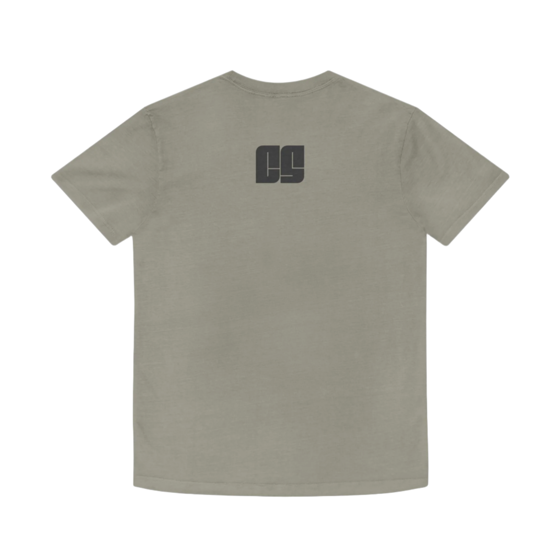 Cowboy Strength logo t-shirt in faded grey with blackout logo on front and back, giving off a rugged and vintage vibe. This unisex t-shirt is perfect for those who appreciate Western-style designs and want to add a touch of cowboy charm to their wardrobe. Ideal for fans of country music, rodeos, and Western culture.